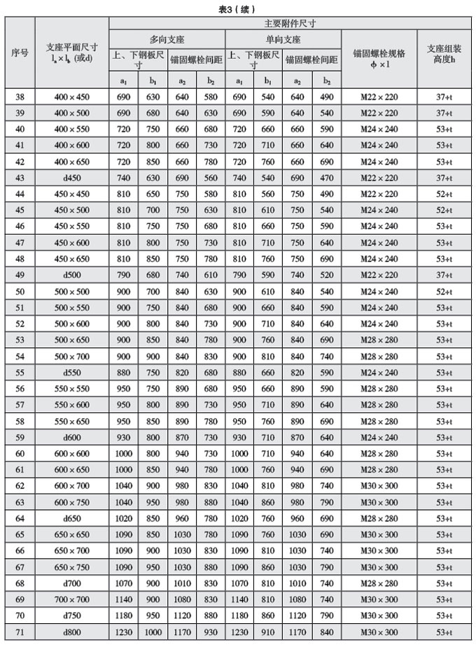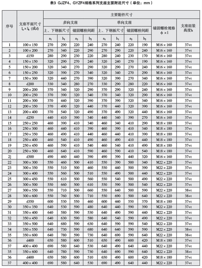 2.3GJZF4、GYZF4規格系列支座主要附近尺寸
