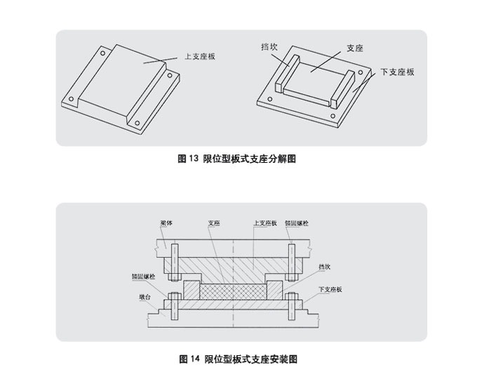 3.1限位型板式橡膠支座性能特點(diǎn)限位型板式橡膠支座,由上支座板、檔坎和下支座板構成。其功能如下:a.能傳遞水平力:將橋梁上部的水平力通過(guò)上支座板檔坎和下支座板傳遞到橋梁墩臺。b.防止橋梁橫向或總想的滑移或落梁:根據設計要求或板式支座允許的位移量,它可以將橋梁橫向、縱向的位移量限制在某一范圍內,或者將橋梁某一方向的位移量固定為零。限位型支座,既具有普通板式支座和四氟板支座的功能,又對其在位移、水平力等等特殊要求的補充利用。