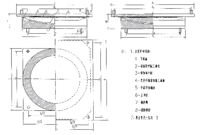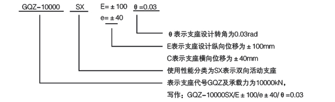 本例表示GQZ系列橋梁球型支座承載力為1000kN,縱向位移± 100mm,橫向位移±40mm,轉角為0.03rad的 雙向活動(dòng)球形支座。