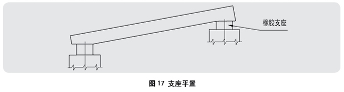 4.1普通板式橡膠支座的安裝 7.1.1現澆梁橡膠支座的安裝 A、先將支座墊石頂面清理干凈,若激臺墊石的標高差距過(guò)大,可用水泥砂漿調整。 B、在支座墊石上按設計圖標出支座位置中心線(xiàn),同時(shí)在橡膠支座上也標出十字交叉中心線(xiàn),將橡膠支座 的中心線(xiàn)與墊石中心線(xiàn)相吻合,支座即就位準確。 C、在澆注混凝土梁體前,在橡肢支座上設一塊比支座平面稍大的支承鋼板、鋼板焊錫固筋與梁體連接。 將支承鋼板視為現澆梁模板的一部分進(jìn)行澆注。為防止漏漿,可在支承鋼板與模板四周空隙處,用棉砂、油灰 或其它物質(zhì)填設。 8.1.2預制梁橡膠支座的安裝 A、首先將橡膠支座按設計要求直接放置在支座墊石上,墊石上面必須亊先清理干凈,并保證平整,然后 將上部構造直接安放在支座上。 B、架梁落梁安裝時(shí)應平穩,防止支座偏心受壓或產(chǎn)生初始剪切變形。 C、在T型梁安裝時(shí),若支座比梁肋底寬(應盡量避免),則應在支座與梁底之間用鋼筋混凝土墊塊或厚 鋼板作過(guò)渡,以免橡膠支座受力面積減少造成應力集中。 8.1.3普通板式橡膠支座的安裝亊項 A、支座安裝時(shí),必須保證位置準確,調整時(shí),避免產(chǎn)生過(guò)大的剪切變形,安裝時(shí)間最好在相當于全年平 均氣湛時(shí)進(jìn)行,以保證因低溫或高溫時(shí)造成支座偏離中心的位置不致過(guò)大,減少剪切變形。 如必須在高溫或低溫時(shí)安裝,可采取以下措施。 a待到全年平均氣溫時(shí),頂起主梁、將支座調整到中心位置。 b在安裝時(shí)根據當時(shí)氣湛計算使支座產(chǎn)生預變形。 c也可以在設計選用橡膠支座時(shí),適當增高支座髙度,使其比原設計支座的剪切變形量大。 B、要保證支座和墩臺及主梁緊密結合成一體,與橡膠支座接觸的上部構造底面和墩臺面必須清潔平整。 如不平整要用水泥砂漿找平。 C、使用普通板式橡膠支座一般沒(méi)用固定纗與活動(dòng)端之分,使用等髙支座時(shí),上部構造的水平位移由同一 片梁兩纗支座的剪切變形共同完成,各承擔一半。也可用厚度較小的橡膠支座作固定支座。 D、當梁體在縱向有坡度時(shí),可按以下幾種情況分別處理。 a梁體縱坡<=1%時(shí),縱坡由支座墊石調整支座斜置。如圖15 b梁體縱坡時(shí),在梁底與支座之間粘結一塊與梁縱坡一致的楔型墊塊,支座平置。如圖16 也可采用梁底一端削去與坡度相一致的一角,在另一端補上與削去部分相等的一角,使支座平置。如圖17 C為了方便施工可直接選用坡度板式橡膠支座。 E支座安裝時(shí),要考慮到以后更換調整橡膠支座的需要,通常采用在支座周邊空間設置各種凹樁以便安 放千斤頂。4.2聚四氟乙烯滑板式橡膠支座的安裝 7.2.1四氟板式橡膠支座的構造與聯(lián)接 a構造:四氟支座的整體結構有“封閉型”和“簡(jiǎn)易型”兩種。對城市橋梁及紫外線(xiàn)輯射、空氣污染與 粉塵嚴重地區,選用封閉型結構,其它場(chǎng)合可采用簡(jiǎn)易型。簡(jiǎn)易型和封閉型分別見(jiàn)圖18和圖19。 b聯(lián)接:四氟板式橡膠支座下鋼板的聯(lián)接可在激臺支承墊石上頂留相應凹坑。架梁時(shí)下鋼板用環(huán)氧樹(shù)脂砂 漿粘結于坑內,四氟板式橡膠支座的上鋼板澆梁施工時(shí),可采用鋼板焊描固筋一同澆注。預制梁施工時(shí),上鋼 板用環(huán)氣樹(shù)脂砂漿與梁底粘結。 環(huán)氧樹(shù)臘砂漿配合比(重量比) 環(huán)氧樹(shù)臘(6101 ) : 100,乙二胺:8—10或三乙烯四胺:8—12 苯二甲酸二丁脂:12 水泥或石英粉或細砂:250-300 8.2.2四氟板式支座安裝應注意亊項 四氟板式支座的安裝方法與普通板式支座基本相同,但應注意下列亊項。 a四氟板式支座系作活動(dòng)支座用,應同普通板式支座(作固定支座)配套使用。安裝時(shí)應精心細致。 支座應按設計支承中心準確就位。梁底鋼板與支承墊石(或下鋼板)頂面盡可能保持平行,同支座上下 面全部密貼;同一片梁的各個(gè)支座位置應在同一平面上;避免支座的偏受壓、不均勻支承與個(gè)別脫空現象。 b與四氟板接觸的不銹鋼板表面不允許有損傷、拉毛現象;以免增大摩擦系數及損壞四氟板。 c支座四氟面的儲油凹坑內,安裝時(shí)應涂刷不易揮發(fā)的“5201桂脂”作潤滑劑以降低摩擦系數。 d支座與不銹鋼板的位置視安裝時(shí)溫度而定,若不銹鋼板有足夠長(cháng)度,則任何季節都可使支座居不銹鋼板 中心位置。 e落梁時(shí),為防止梁與支座發(fā)生縱橫向滑移,宜用木制三角勢塊在梁體兩側加以定位,待落梁工作全部完 畢后拆除。 f上部結構為連續體系時(shí),固定端橡膠支座為提高可靠度,防止固定支座的縱橫滑移,可設置防爬裝置。